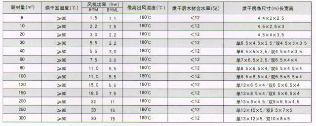 木材干燥系統(tǒng)主要參數(shù):